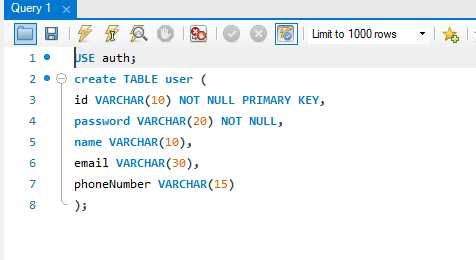 데이터베이스의 테이블은 따로 마이그레이션 하지 않고 mysqlworkbench에 들어가서 직접 테이블을 생성해주었습니다.